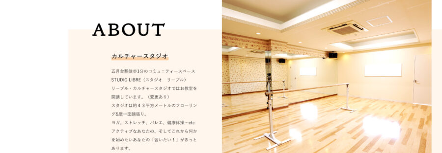 神奈川県に新しく五月台・新百合ヶ丘を活性化するスタジオをオープンします。先行してティザーサイトを公開し、満を持して2017年4月にWebサイトのフルリニューアルをいたしました。五月台という閑静な土地を活性化させ、地域貢献したいという考えのもと老若男女が気軽に訪れることができるスタジオ。お客様の希望もあり、誰が利用してもわかりやすいWebサイトを意識し、利用者様に合わせて機能が違うスケジュールをページ毎に設けることでいつ何が行われてるのか、いつレンタルスペースをいつ借りることができるのかを分かる様にしました。また全体を通して、内容に合わせて背景の色を変えることで、何のコンテンツなのかが直感的に分かる様に配慮いたしました。
