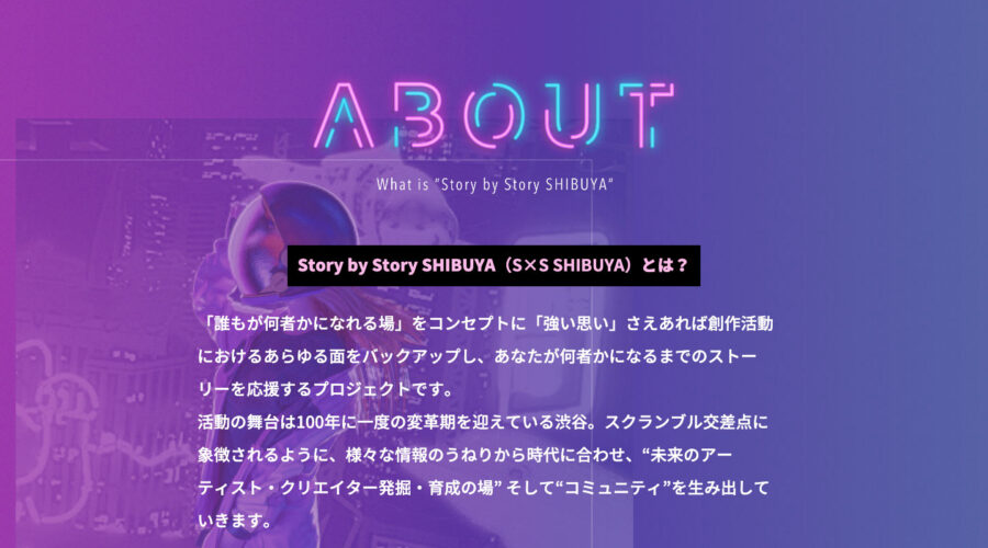 日本テレビ放送網 株式会社様、株式会社 ソニー・ミュージックレーベルズ様、株式会社 東急エージェンシー様、株式会社 GRIP様、4社共同出資による、次世代アーティスト・クリエイターを発掘・育成するプロジェクト「Story by Story SHIBUYA」のサイト制作をいたしました。