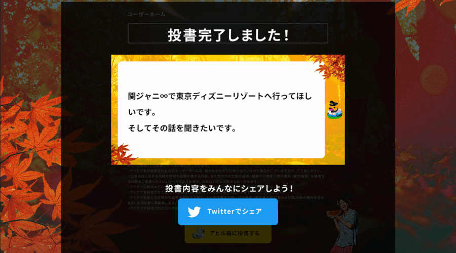 WordPressでのCMS化と投稿したアイデアコメントをイメージ化し、Twitterでのシェアを可能にしています。